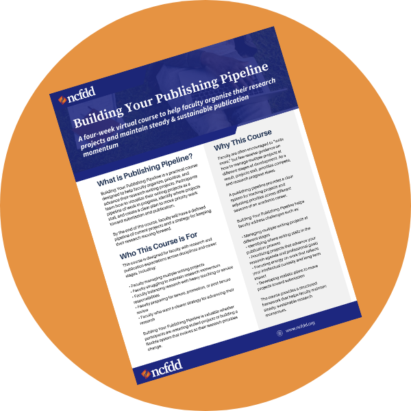 Building Your Publishing Pipeline is a four-week virtual course designed to help faculty organize, prioritize, and advance their research writing projects with greater clarity and consistency.