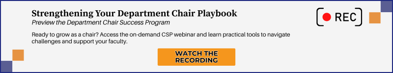 That’s what the Department Chair Success Program (CSP) is designed to provide. And if you’ve ever thought, “I wish I had a better way to lead these conversations,” or “There’s got to be a more sustainable way to do this,” then you’ll want to hear from others who’ve been in your shoes.